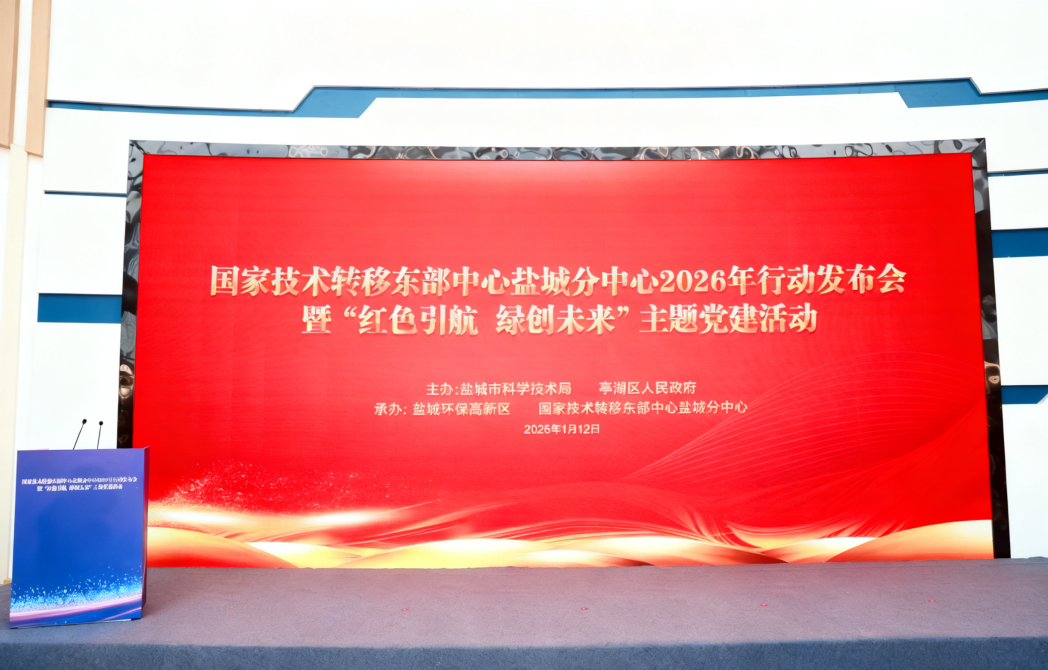 1月12日,2026年行动发布会暨‘红色引航绿创未来’主题党建活动”国家技术转移东部中心盐城分中心圆满举行。本次活动由盐城环保高新区、国家技术转移东部中心盐城分中心承办,汇聚了沪盐两地政府领导、高校专家、金融机构及各企业代表,共同擘画盐城科技创新与成果转化新蓝图,吹响了“十五五”时期盐城建设长三角北翼科创高地的奋进号角。会上,国家技术转移东部中心总裁邹叔君现场发布了盐城分中心2026年“六大行动”工作方案。活动全程贯穿“红色引航”主线,通过党支部共建、党员教育培训签约等形式,推动党的建设与科技创新同频共振,为事业发展提供坚强组织保障。
